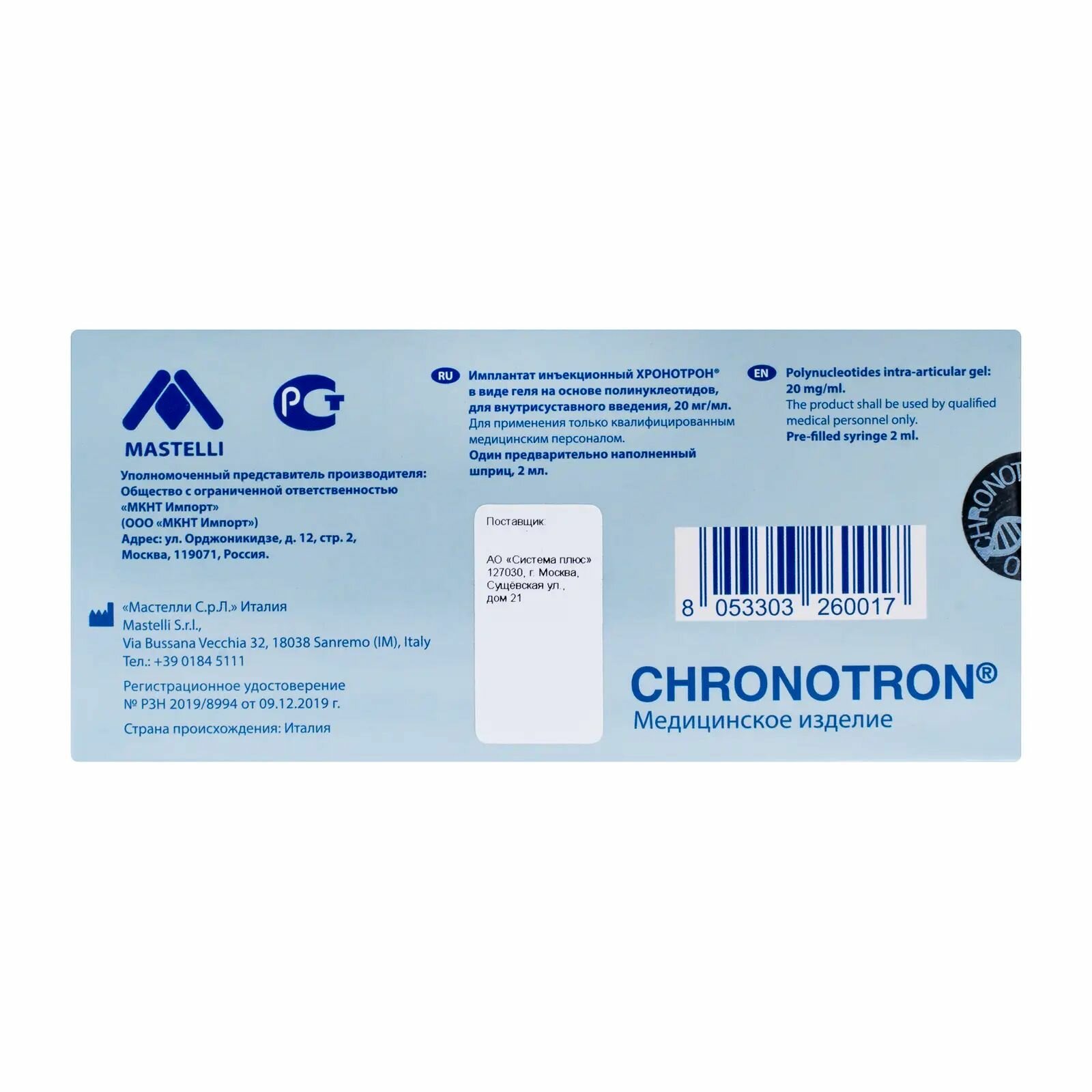 Хронотрон имплантат в виде геля 20 мгмл шприц 2 мл